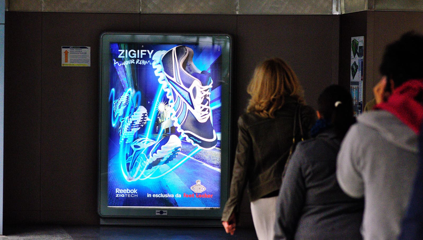 Billboards on Mupi systems inside the Underground in Milan and in Rome, positioned in the strategic flows of the stations. The Mupi are bright and lightened in order to enhance the images and capture the attention of everyday travellers. Exhibitions last up to 14 days